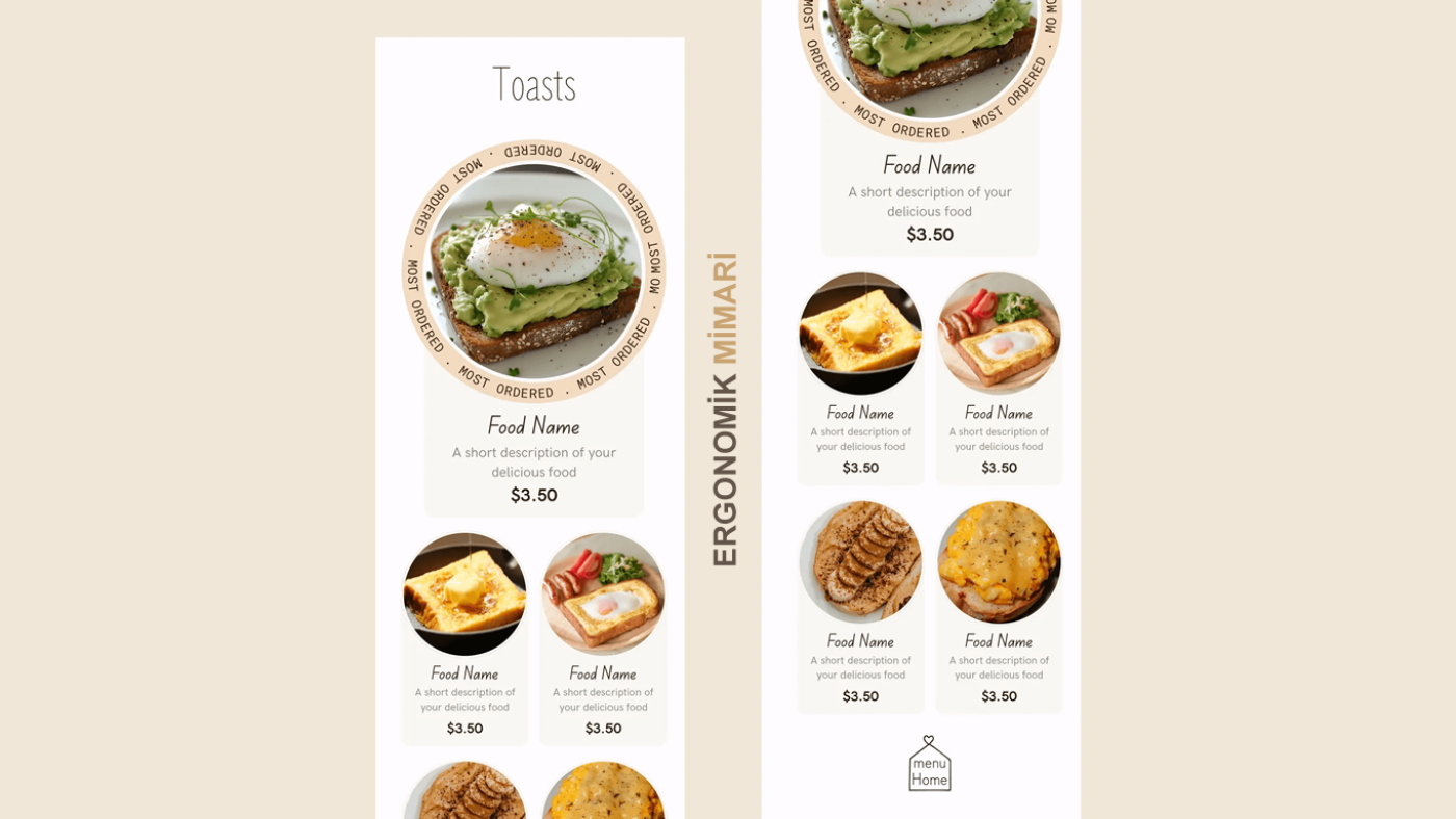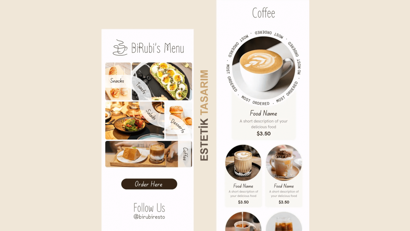 Ürünler, fiyatlar ve açıklamalar mobil uyumlu ekranda görüntülenir. Güncel menü, kampanya ve içeriklere hızlı erişim sağlanır.